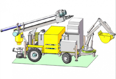 UP31B中深孔采矿台车,适用于中小型巷道的采矿作业。台车配备ZY104MZ凿岩机,钻凿φ64-102mm,孔深50m的中深孔,先进的电比例负载敏感操作系统的应用,将给你带来高精准的钻孔体验。